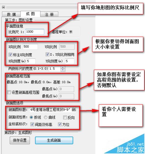 4、单击插件界面“成图”选项,对插件进行设置。设置完成后点击保存设置。