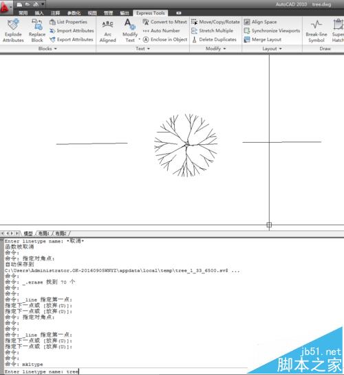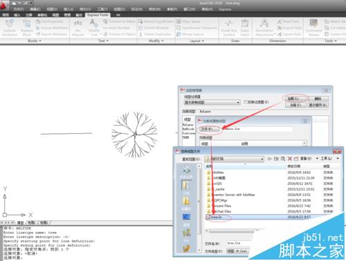 2、保存后,命令行提示Enter linetype name: ,这里我输入tree然后回车。