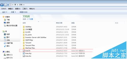 8、线型所在文件夹如图。这个tree.lin即AutoCAD线型定义文件。