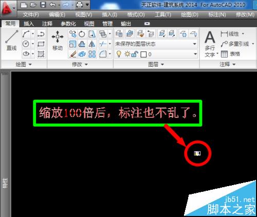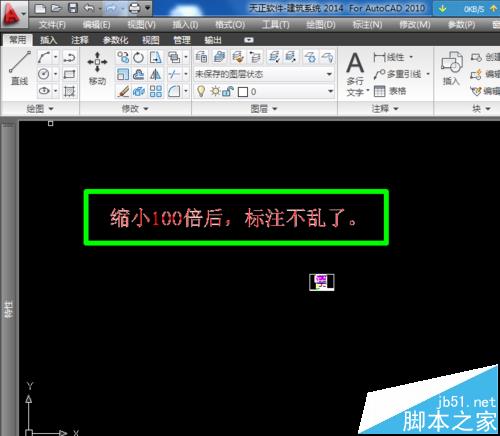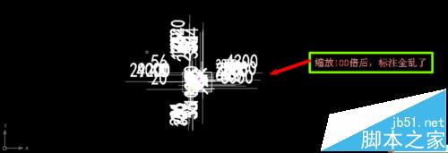 2、缩放图形。缩放后的图形的标注同样也不乱了。