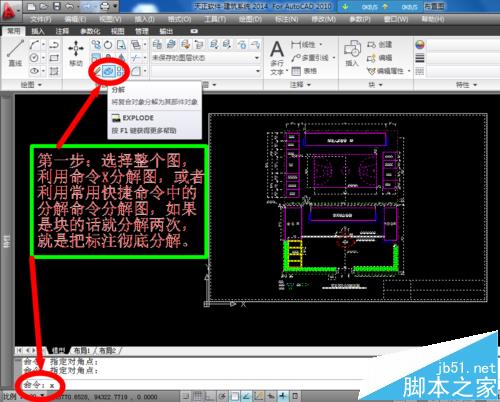 1、分解图形。全选图形,利用X命令分解图形。如果是块的话要分解两次,就是把标注也彻底分解了。