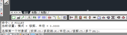 3、效果如下面图片,我们一般是要修剪的,所以我们在操作时,一般不去选择,不选择是就修剪,输下F再按R输入圆角半径,再点所要处理的对象即可。