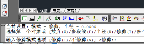 2、输入T后,命令框如下:修剪 和不修剪,修剪就是去掉原有的线,不修剪就保留原有的线。
