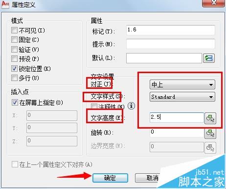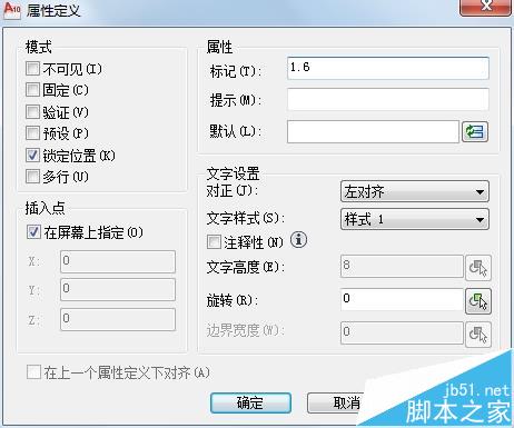 3、画出后,点击插入→定义属性;弹出属性定义对话框