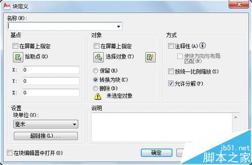 6、接下来创建块;插入→创建;弹出块定义对话框