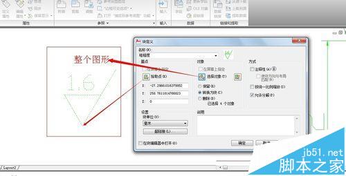 7、名称:粗糙度,拾取插入点;选择对象为整个图形