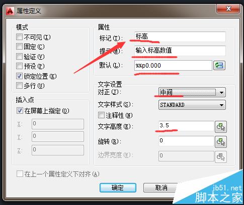 2、选择菜单栏中的“绘图”然后找到“块”然后,再点击“定义属性”的命令,系统打开“属性定义”对话框,进行属性设置,其中模式为“验证”,插入点为粗糙度符号水平线中点,然后确认的退出。