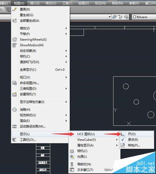3、直接输入“UCS”,把光标放置在你需要设置的原点位置,并选择“X”、“Y”轴。桌面上就会出现已设置好的坐标原点,可以看到“X”、“Y”轴。如果看不到,需要打开坐标。