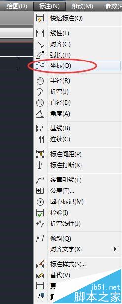 4、设置好坐标后,选择“菜单栏”标注—坐标,进行标注尺寸