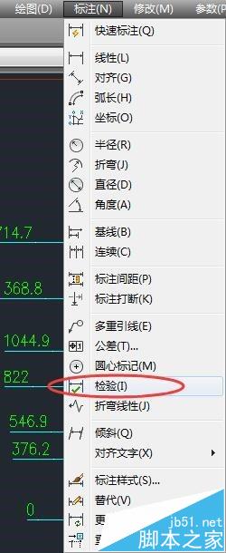 5、标注好尺寸,选择“菜单栏”标注—检验