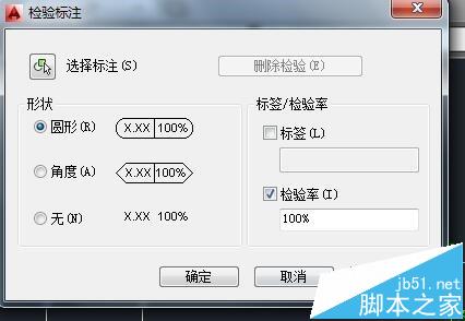 6、在弹出的窗口中,取消勾选检验率和标签,选择左侧的形状为圆形,然后确定。弹出对话框,点击“是”。框选需要添加重点管控的尺寸,然后右击确定。