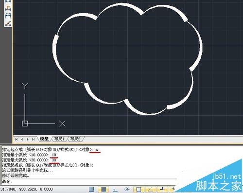 弧长:点击云线命令后,输入A回车,输入最小弧长值回车,输入最大弧长值回车,注意,最大弧长值不能超过三倍的最小弧长值。然后点击绘图区一点移动鼠标回到起点得到云线。