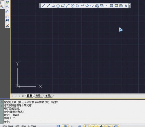 3、点击云线命令后,输入栏出现:指定起点或 [弧长(A)/对象(O)/样式(S)] <对象>: