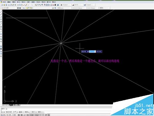 2、构造线,也可以说是射线,快捷键是【XL】,因为画出来线的两端是没有尽头的,所以可以被称为射线,下面图解:
