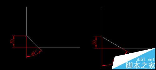 2、修剪(T):默认为修剪模式,就是将原来的直线超出倒角的部分修剪掉,如果设置为不修剪,则生成倒角的同时原有的线保留不变,如下图所示。