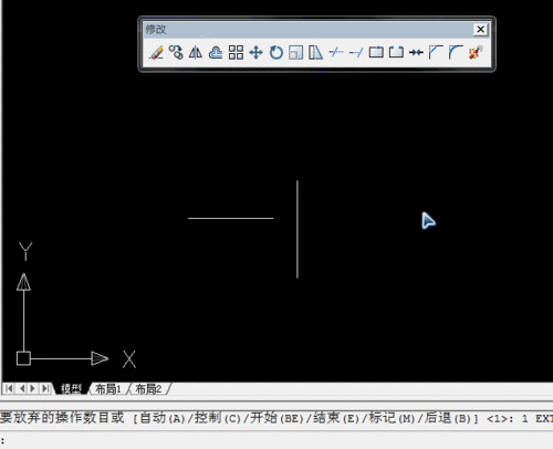 1、可以点击延伸命令,也可以点击修改下拉有个延伸命令,或者也可以输入EX回车执行延伸命令。