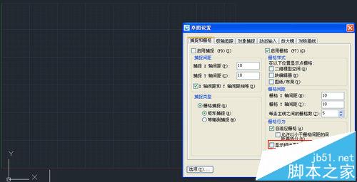 栅格是点或线的矩阵,遍布指定为栅格界限的整个区域。使用栅格类似于在图形下放置一张坐标纸,利用栅格可以对齐对象并直观显示对象之间的距离。栅格是不会打印的。栅格可以只在图纸界限(limits)内显示,也可以不受图纸界限的限制,如下图所示: