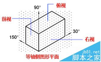 2、在这种状态下,不仅可以绘制方体的轴侧效果,还可以利用椭圆的等轴测圆(I)选项来绘制轴测图中的圆。在使用等轴侧栅格时,按F5可以切换坐标方向,从而方便绘制左视图、右视图、俯视图,按F5的时候我们可以看到坐标轴的变化,如下图所示。