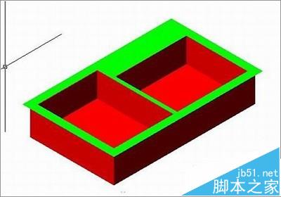 1、首先新建文件,在俯视图中绘制长方形,用矩形命令,长为760宽为450。然后用拉伸命令对长方形进行拉伸,高度150。接着用抽壳命令进行第一次抽壳。删除上面,抽壳距离为20。然后用移动面命令将右内侧小面沿x轴向左移动400,再次执行抽壳命令,删除上面,抽壳距离为20。然后用移动面命令间抽壳后的后内侧沿y轴向前移动80。结果如图: