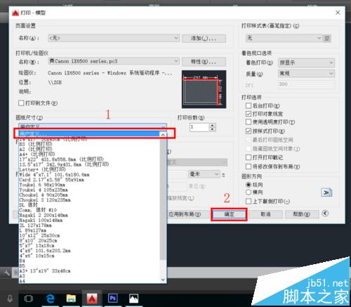 7、“图纸尺寸”选择我们刚才设置好的“用户定义”,单击“确定”即可。