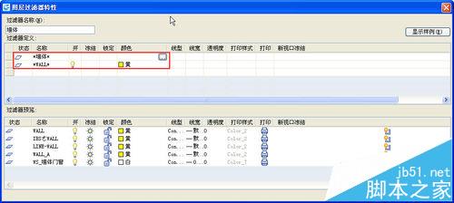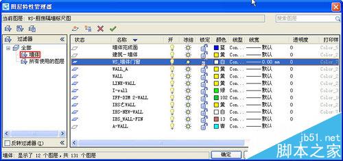 2、在上面的过滤器中,我们设置了两个过滤条件,都是用名称来过滤的,分别是*墙体*和*WALL*,就是将图层名字中带墙体和WALL的图层都过滤出来,过滤结果如下图所示。
