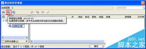 1、在图层特性管理器中单击“组过滤器”按钮,就可以创建一个组过滤器,此时可以给过滤器起一个名字。如果这是没起名字也没关系,随时可以右键单击此过滤器,选择“重命名”来改名字。