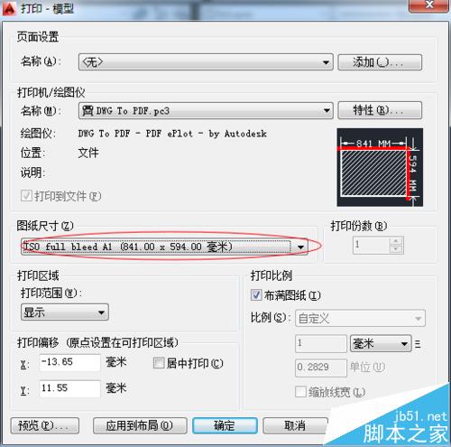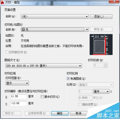 打印图纸,预览图形时四周有白边?【打印比例】设置为1:1,预览图形时显示不全?勾选【布满图纸】复选框,比例不正确?我想,这就是所选图纸可打印区域与图框尺寸不相符的问题。