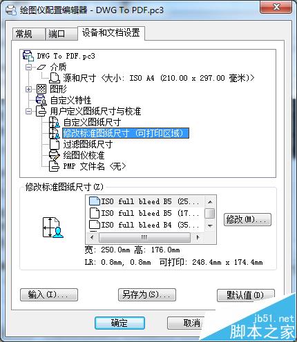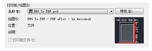 2、在【打印机/绘图仪】组合框内选择打印机或绘图仪名称。单击【特性】,打开【绘图仪配置编辑器】对话框。
