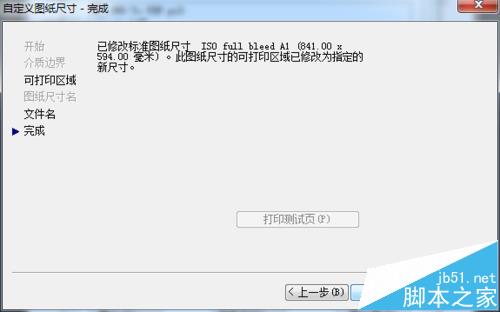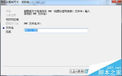 4、输入【PMP文件名】,单击【下一步】,单机【完成】关闭【自定义图纸尺寸】对话框。单击【确定】关闭【绘图仪配置编辑器】对话框。自动弹出【修改打印机配置文件】对话框。选择【将修改保存到下列位置】复选框,单击【确定】关闭对话框。