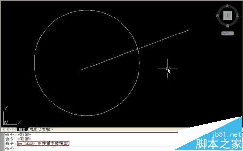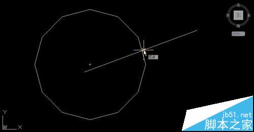 3、如果之前的圆足够小,放大后我们会看到圆是明显的多边形。这种显示并不会影响绘图精度,我们可以试验一下。画一条直线与圆相交,然后在执行画直线命令,捕捉圆与直线的交点,如下图所示。