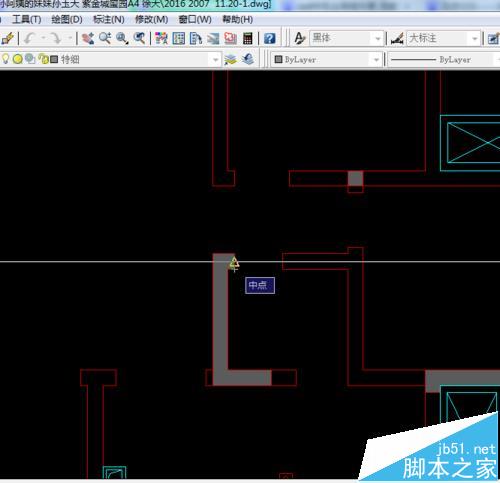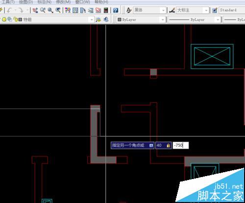 3、在命令栏输入RCE画矩形。将鼠标放在要画门的门洞一侧的墙壁上,会显示中点,以此点为几点画矩形。