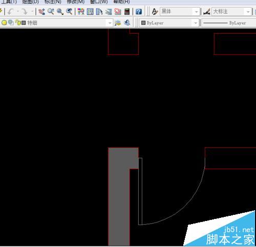 7、在命令栏输入TR,然后空格,再空格,将不要的部分除去,即用鼠标点击不要的圆弧,得到如下图所示。门就画好了。