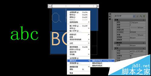 删除格式里有三个选项,可以选择只删除字母或段落格式,也可以全部删除。删除字符格式后,原来对字体、颜色、字高的修改都被删掉了,多行文字才会恢复了它应用的样子,如下图所示。
