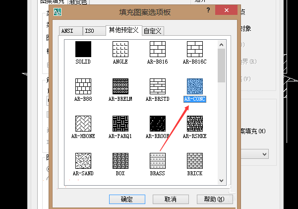 5、之后再打开“填充图案选项版”,然后选择里面的AR—CONC图形。