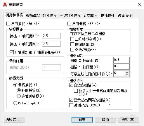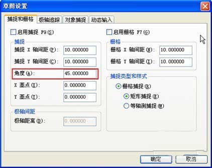 1、在CAD早期版本,这个角度是可以再栅格和捕捉设置对话框中设置的,如图所示。但到了后期版本,在捕捉和栅格设置对话框中就找不到这个选项了,不知道是什么原因。