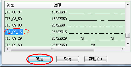 4、拖动上图中加载下面的线型选择,这里我个人选择的是红色框住的那种线型,如下图所示。点击确定。这时回到cad的工作空间,选择刚上添加的那个虚线线型,置为当前就可以了。如下面第二幅图。