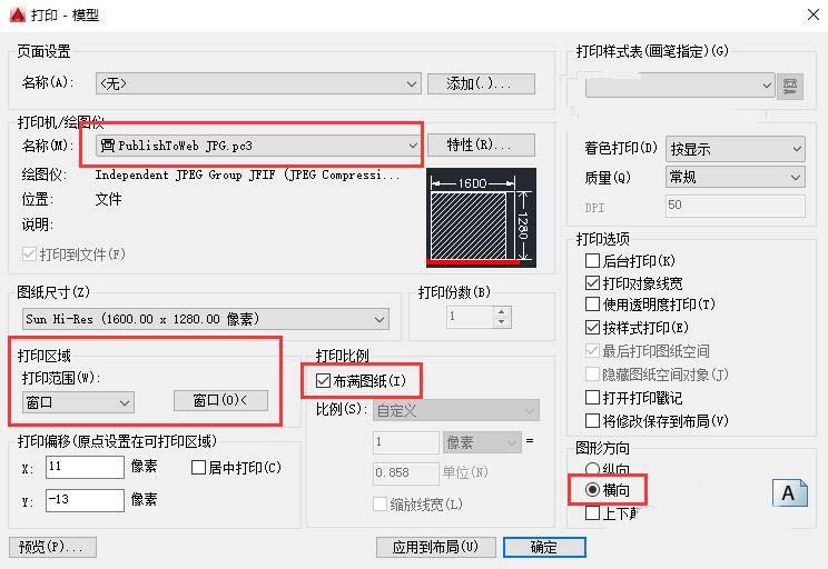2、用CAD打印成JPG格式图片。这种方法生成图片的质量比较满意,一般情况下够用了。 执行CTRL+P打印后,打印机名称选择 “PcblishToweb JPG.pc3 ”这个打印机。设置好保存路径和名称然后预览并打印,CAD就会在设置的保存路径生成这个给定名称的JPG文件,然后将此JPG文件导入PS即可。