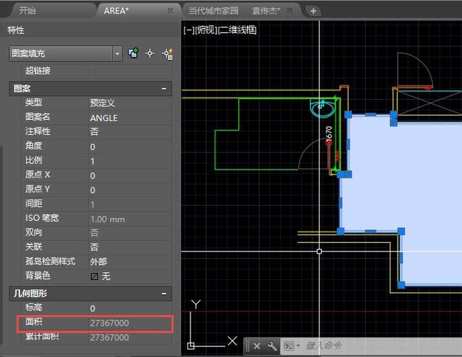 2、当创建填充后,我们可以通过特性面板(CTRL+1)和查询LI命令来获取填充的面积。选中填充,按CTRL+1打开特性面板,找到面积,如图所示。