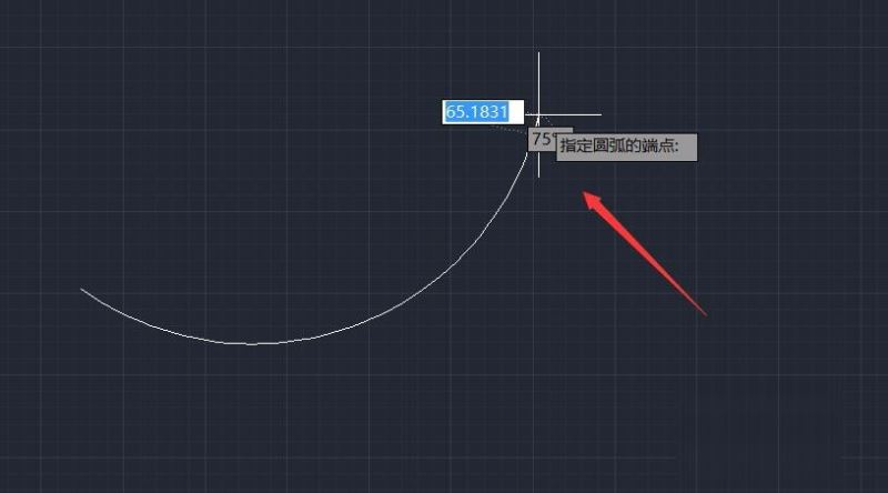 6、在第二个点的为点击鼠标左键,就得到了一段圆弧,如图所示: