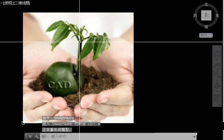 2、IMAGEFRAME命令有三个选项,默认选项是1,这种状态下不仅显示有边框,而且打印的时候也有边框,如图所示。
