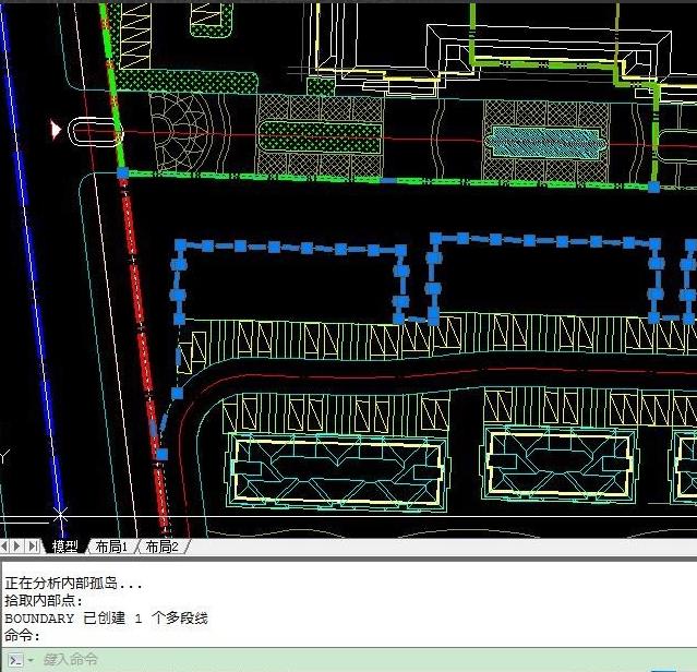 4、按照命令行提示,拾取内部点,鼠标左键单击要生成闭合多段线的内部区域。