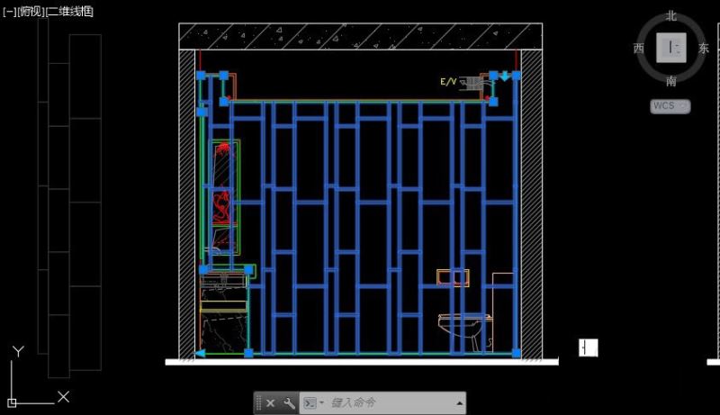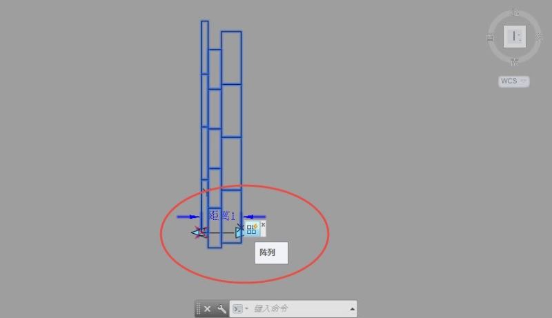 4、这个图块还不是普通的图块,绘图者为何适应不同区域的大小,并没有简单地将单元阵列几个,做成一个固定的图块,而是将一个单元图块后,设置了一个阵列的动作,如果墙面较宽,拉动夹点就可以多个单元,如果墙面较窄,就可以少几个单元。