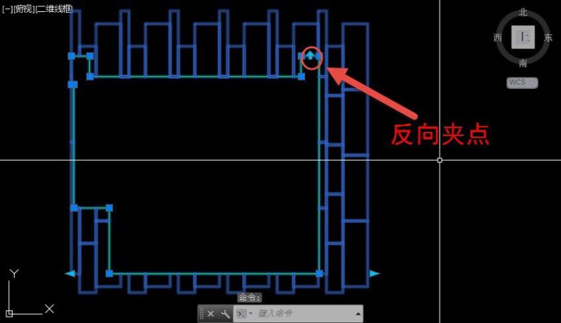 2、如果你的CAD版本比较低,你打开这张图纸可能只会看到一个夹点,如果你的图纸版本够高,比如说2012以上的,你会看到图块边界上有很多夹点,上面还有蓝色的向下的箭头形的夹点。
