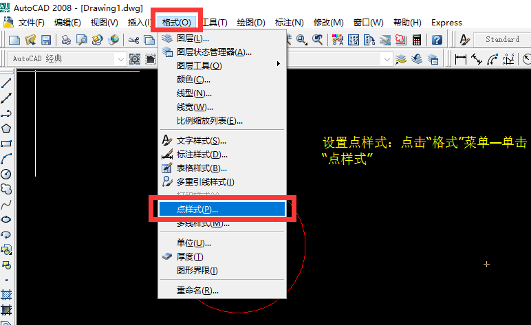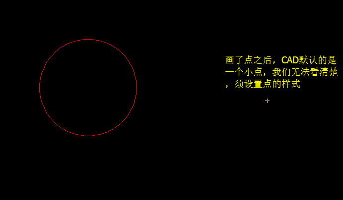 1、首先打开CAD输入圆(C)命令,画圆;单击工具栏“点”命令,画“点”(若点看不清楚,需设置点样式)