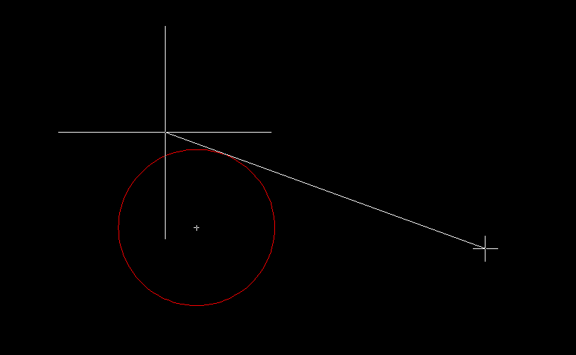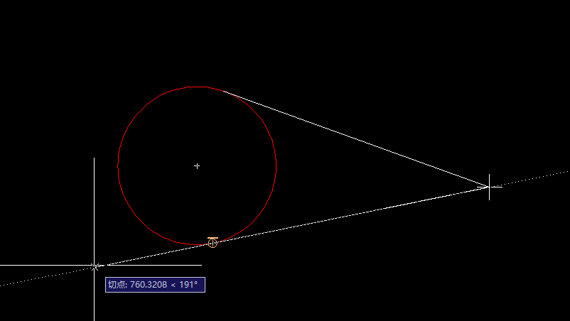 3、命令行输入“tan”命令,空格键,捕捉到圆,回车确认,相切线绘制完成。