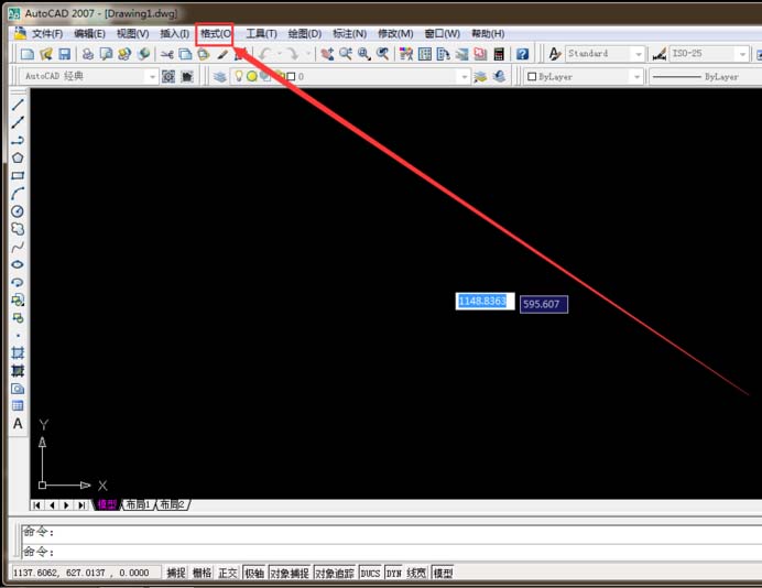 2、如图所示,鼠标单击“格式”,这个时候就会出现设置各种样式,单击“多线样式”;
