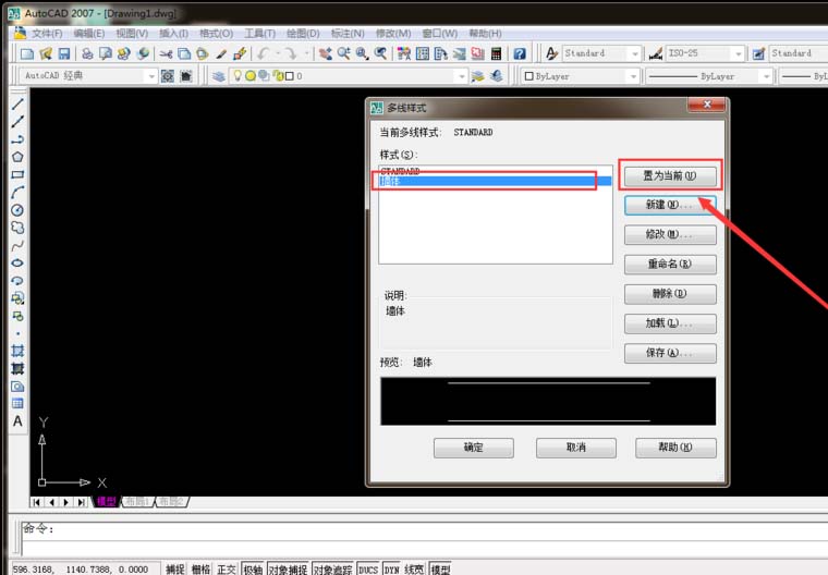 8、如图所示,单击“墙体”样式,然后单击“置为当前”;