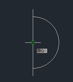 7、将光标水平向右移动到圆弧的右侧象限点上,然后单击鼠标指定线段的第一个点。