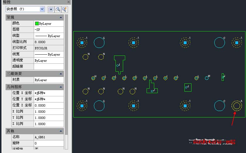当我们需要统计某种图块的数量或者全部删除某种图块的时候也这个功能也很方便,会自动将同一图层上的同名的图块过滤出来,如下图所示。