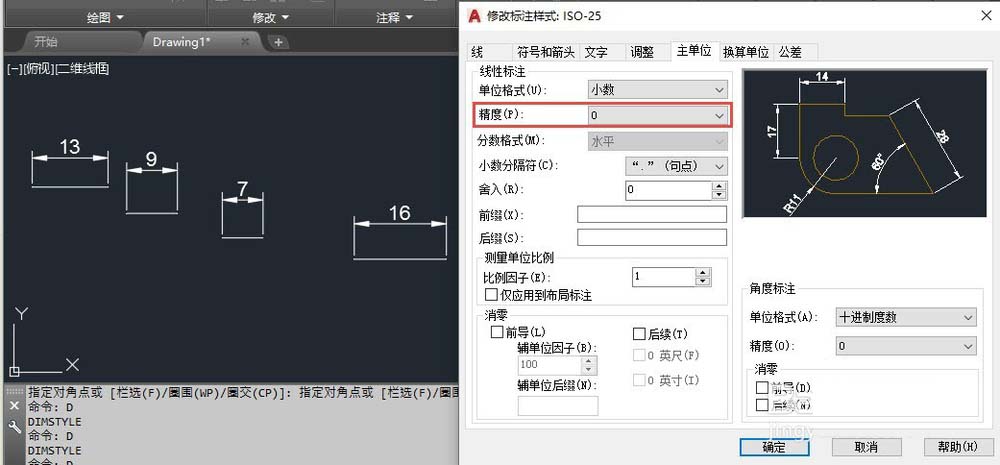 1、如果我们只是希望标注进行正常的四舍五入,直接设置精度后的小数点的位数就可以了,假如我们希望标注是整数,可以将精度设置为0,如图所示。